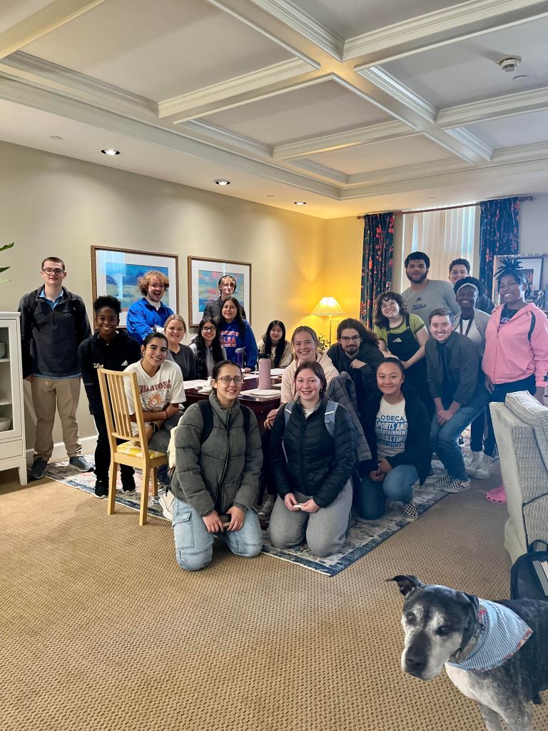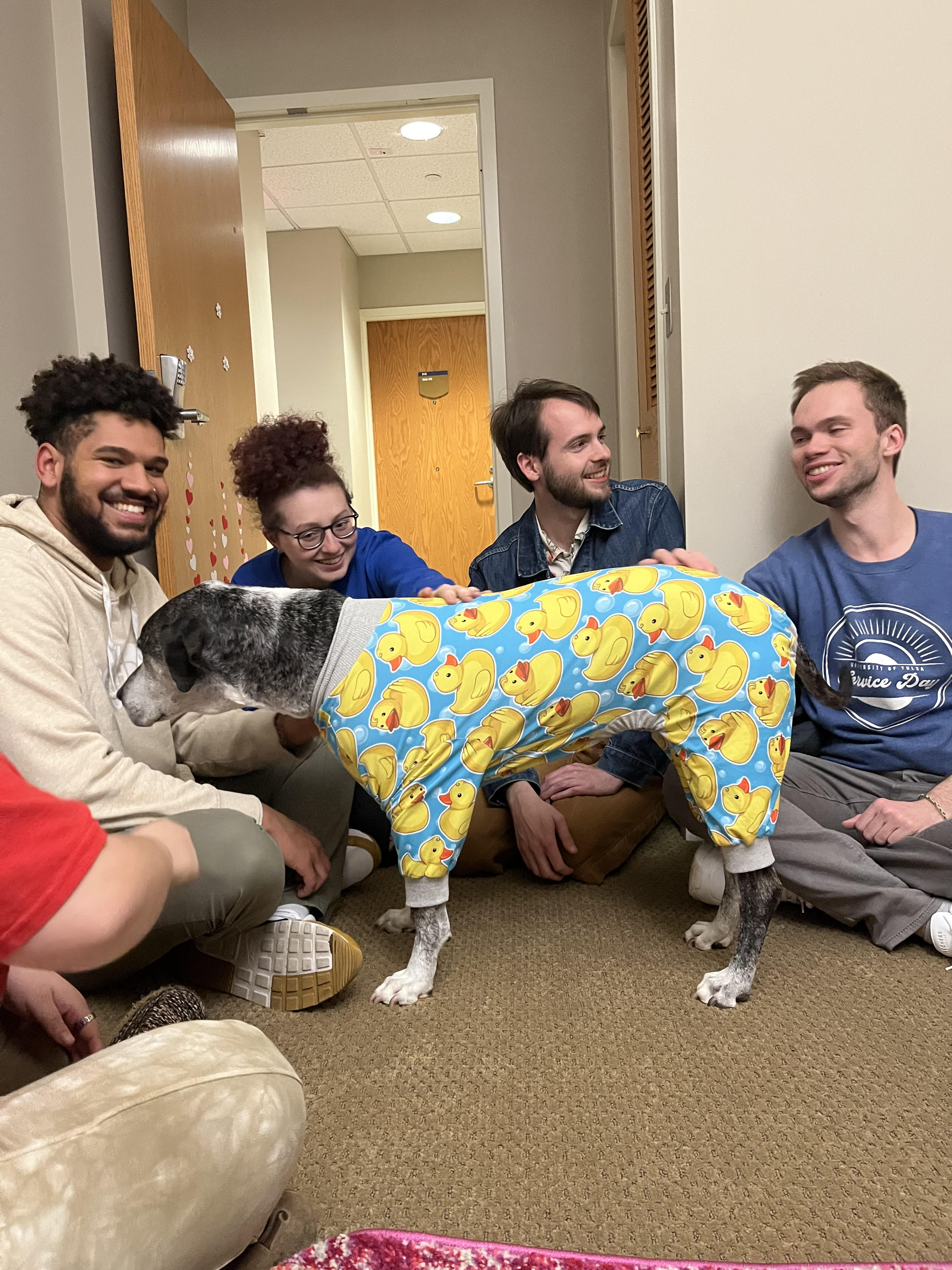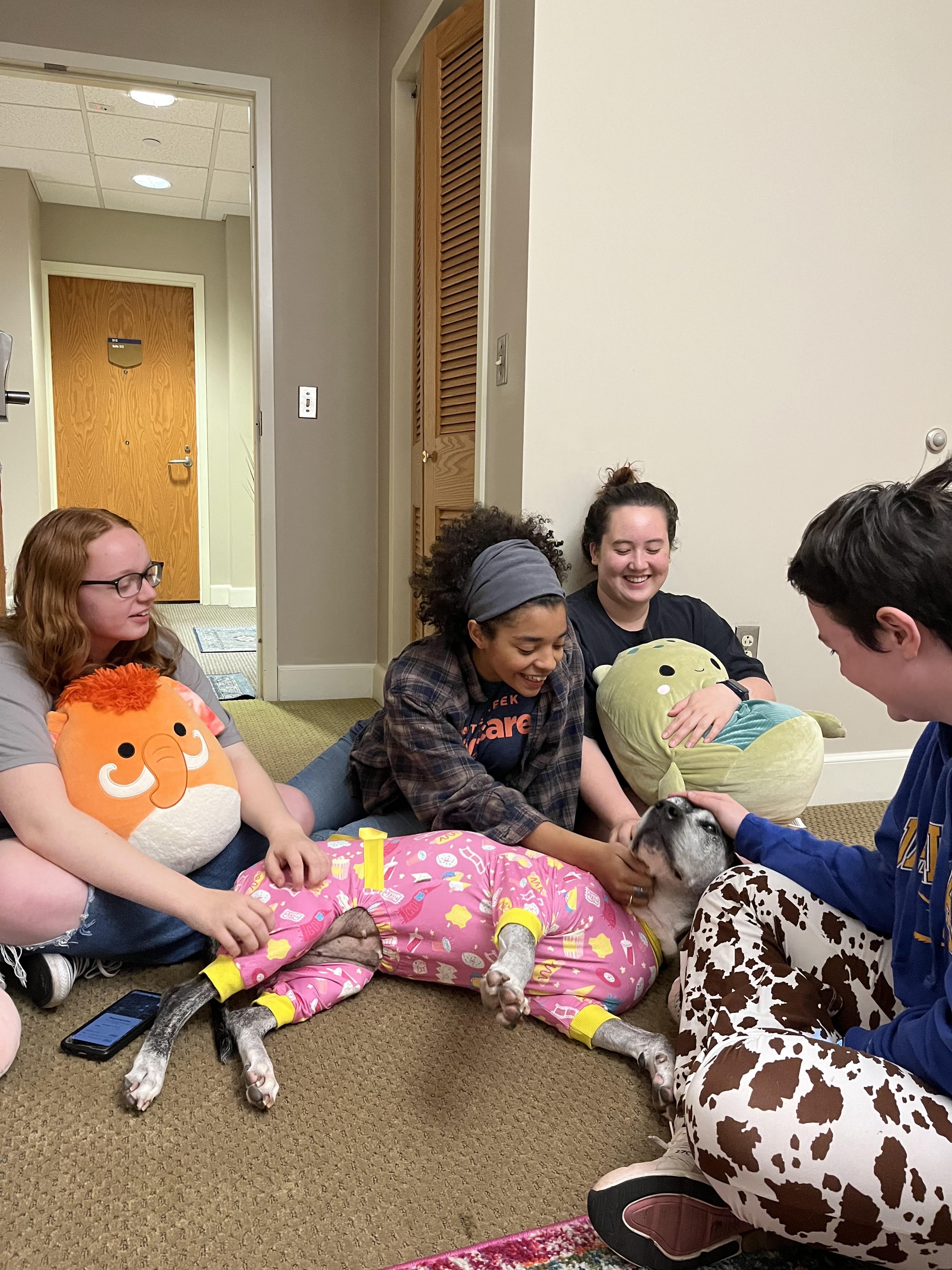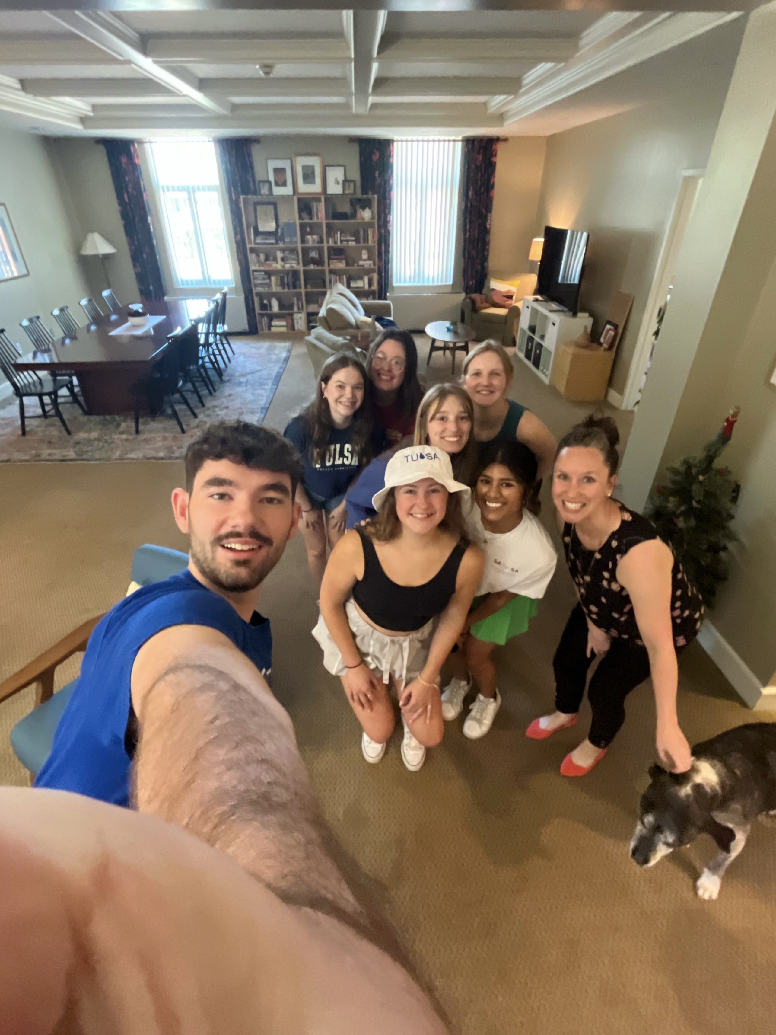 Being from a small town and leaving a dance company, I craved family, connections, and leadership when I began college. This program gave me everything I needed and more. I went to every event put on by the Faculty in Residence program and met so many people. I’ve been to Pup and PJs, the Finals Prep Workshop, the monthly dinners that the Contois family put on, and the group trips that Prof. Contois has led, like to Philbrook Museum and events at 101 Archer. I grew as a person and as a student. My favorite event is Pup and PJs because it allowed me to have a space to just relax and get stress and worry out. The biggest plus is Contois’s dog always wears the cutest PJs. In all these events, I got to learn from peers, professors, and guests to the university about how college has shaped them as the person they are. Going into my senior year, I am grateful to the Faculty in Residence program for helping me build a foundation for my college career and adult life. The experiences and lessons I have learned from the Faculty in Residence program will stay with me the rest of my life.