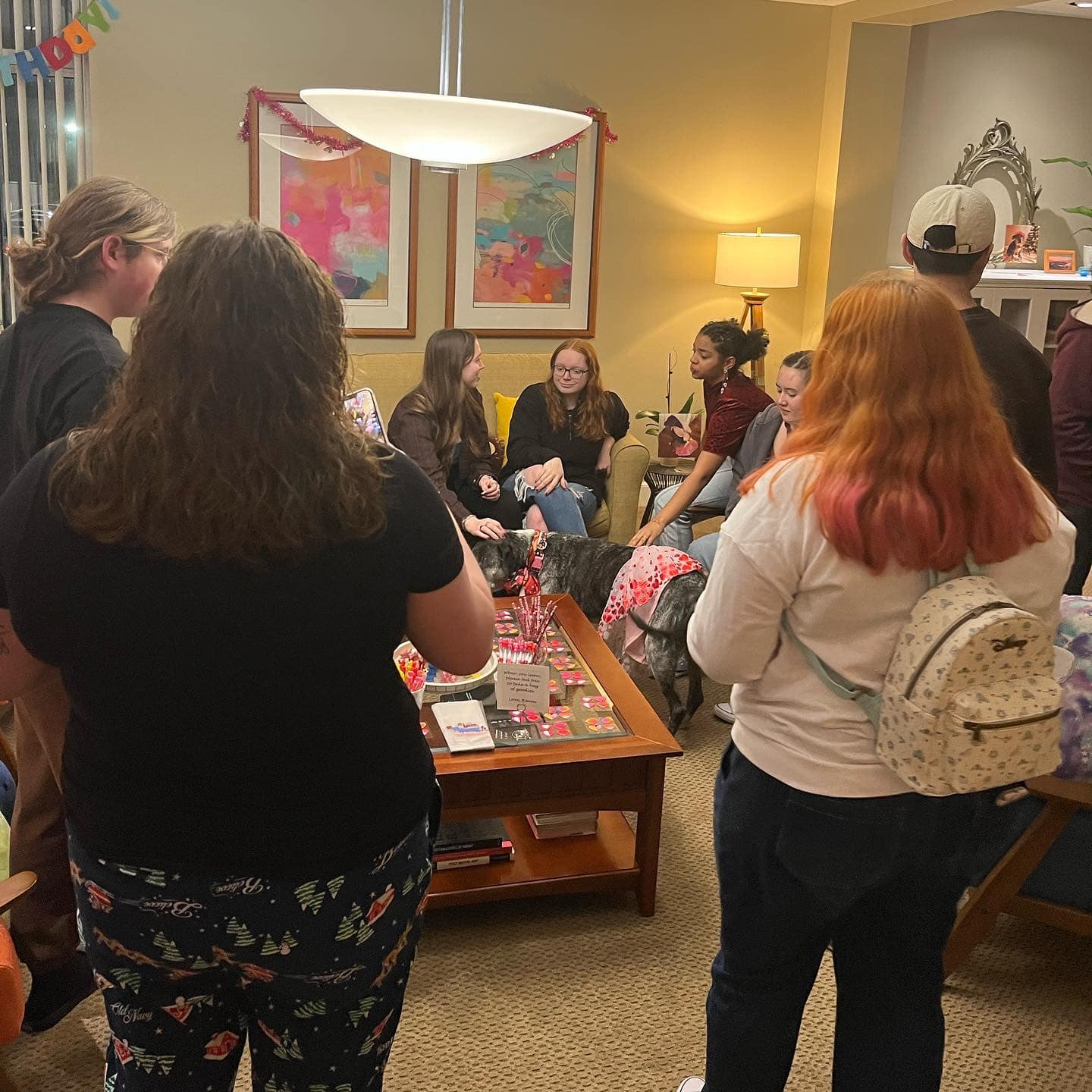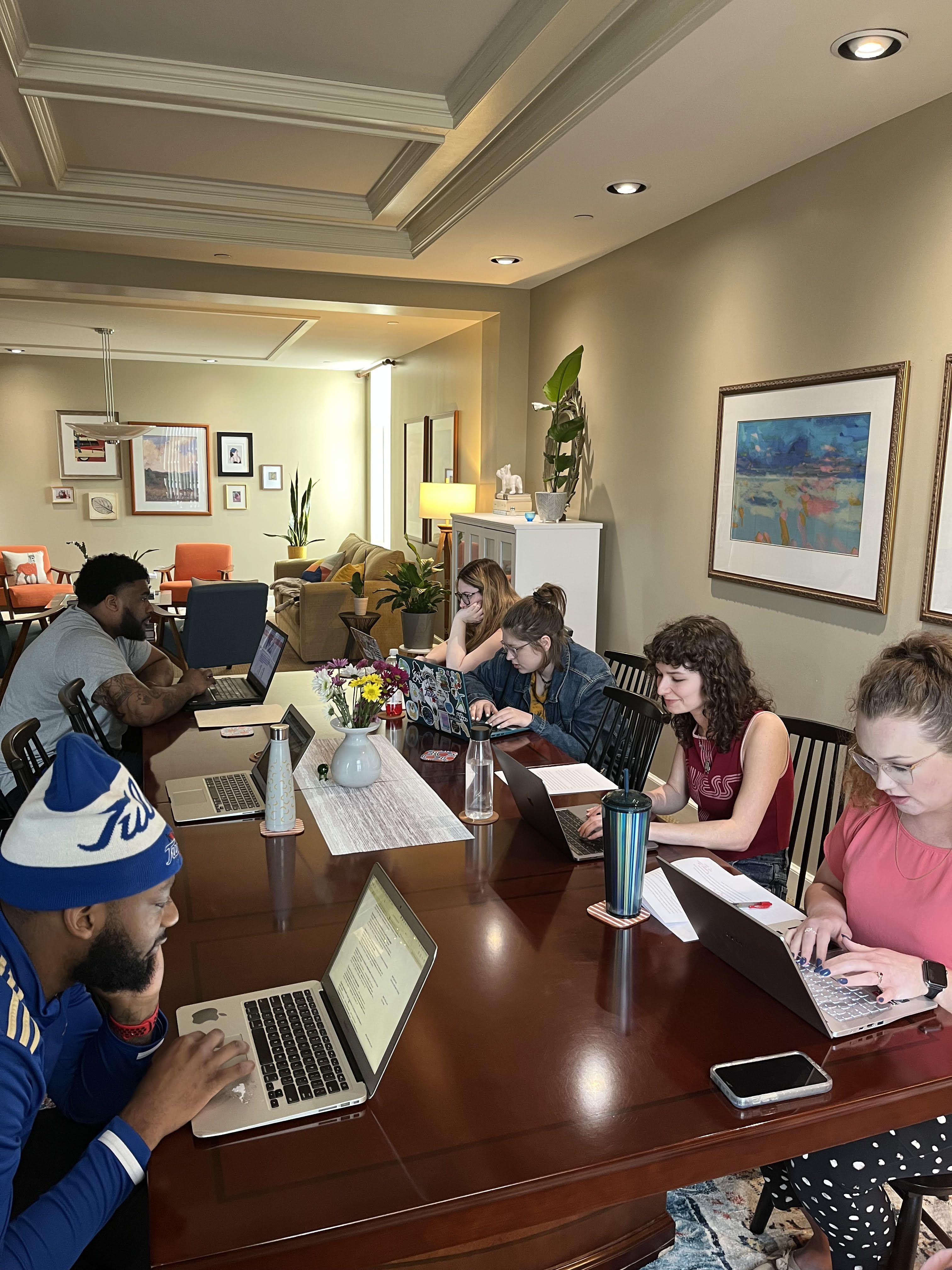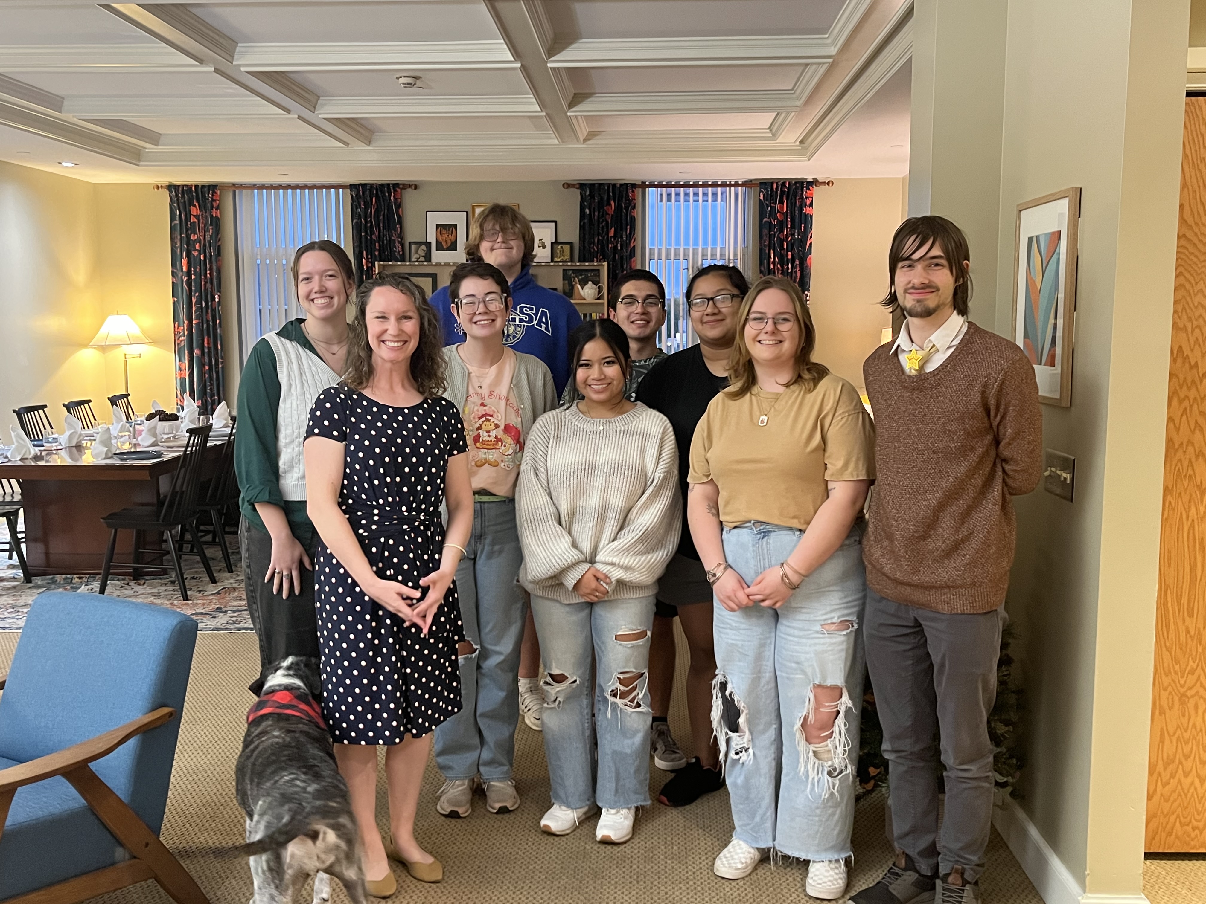 The 2024-2025 academic year marked the third in my (Emily Contois, Associate Professor of Media Studies) Faculty in Residence (FiR) journey at The University of Tulsa, along with my husband, Chris, and our dog, Ruby. Over these three years, we’ve hosted 115 events in our home and participated in many more across campus. We’ve continued successful FiR programming from our first year—including weekly office hours, Pup & PJs evening events, and monthly dinners at our home—and built upon successes from our second-year—including academic skills workshops and social events that merged my teaching and FiR work.