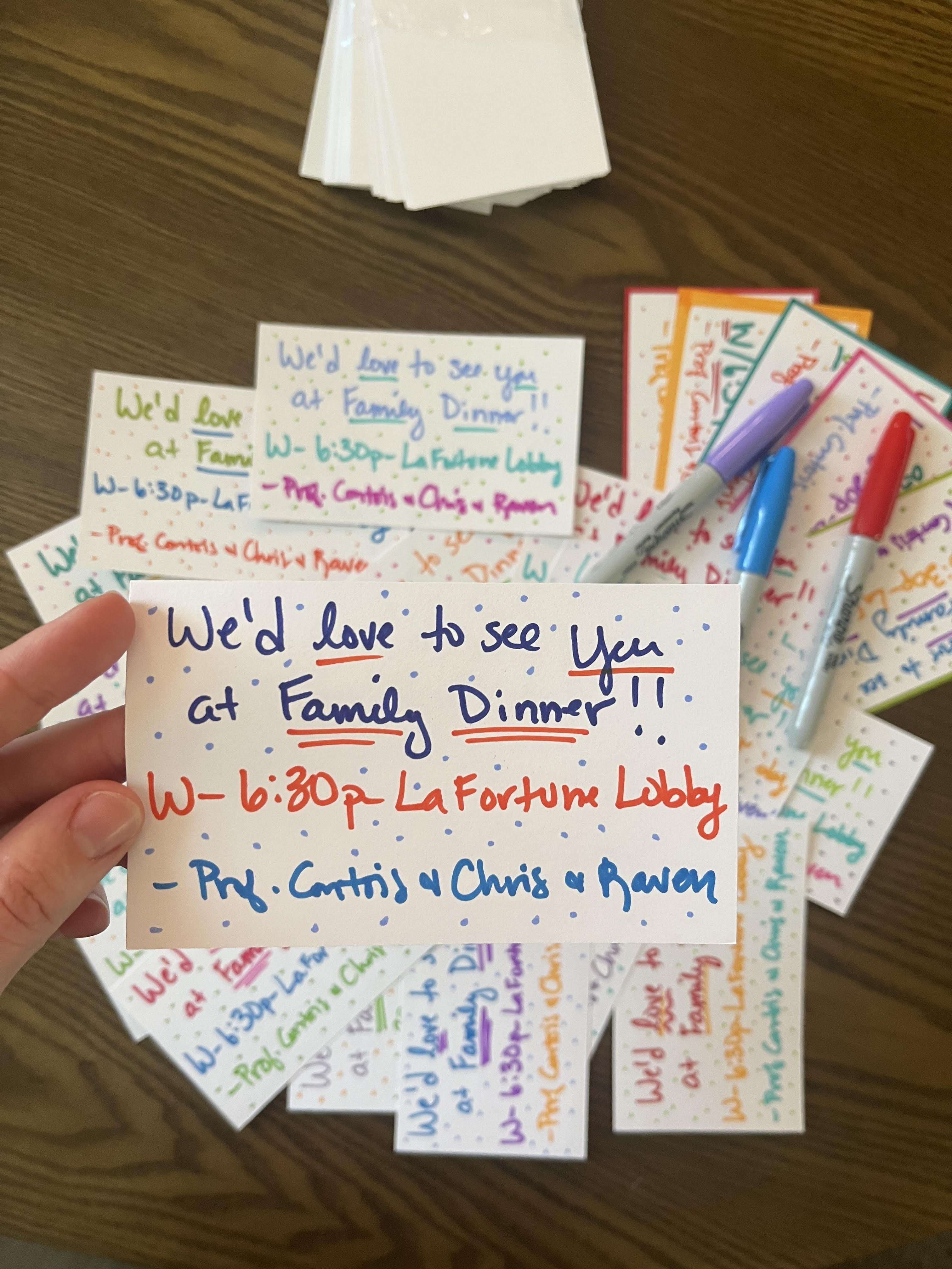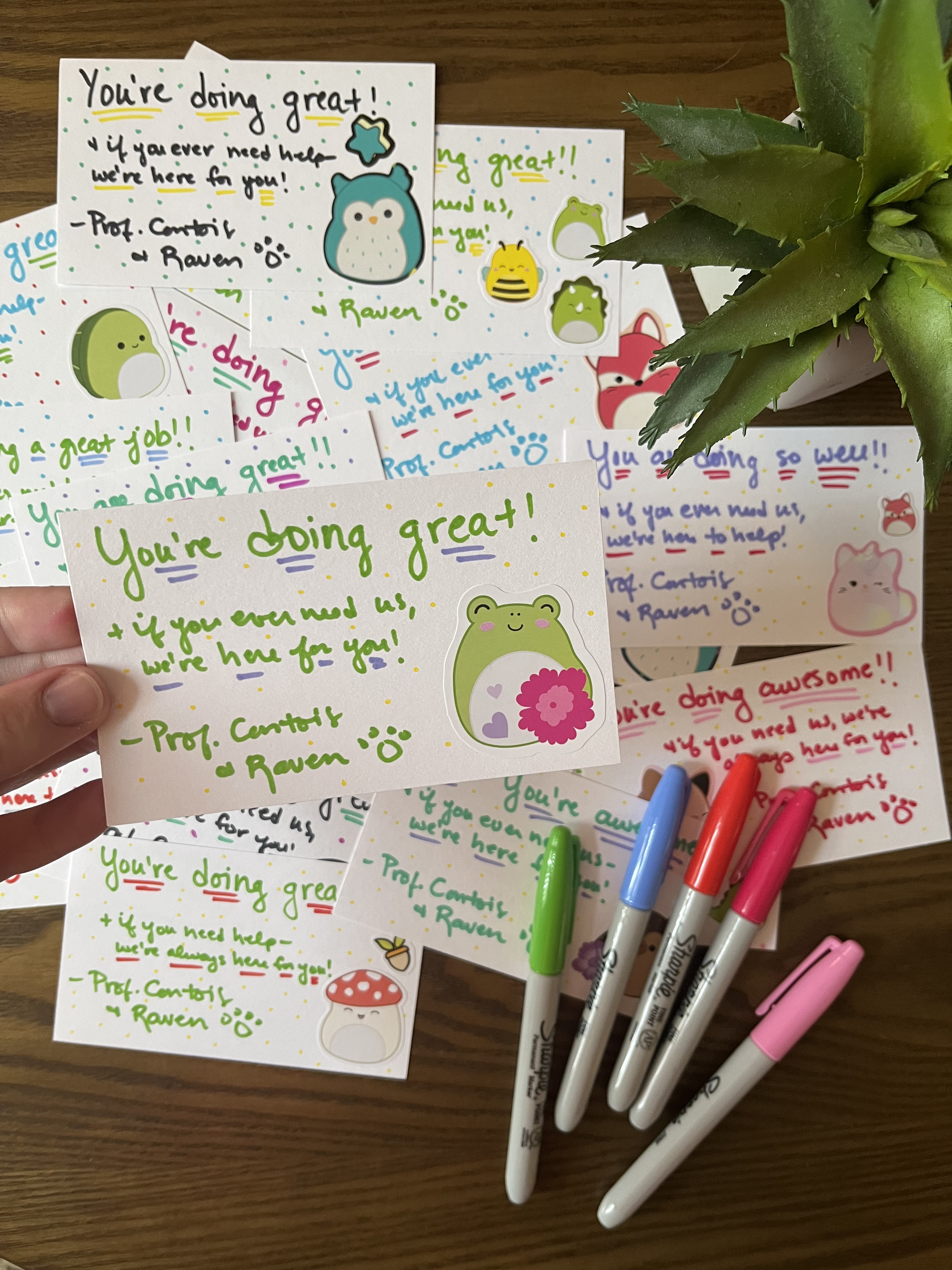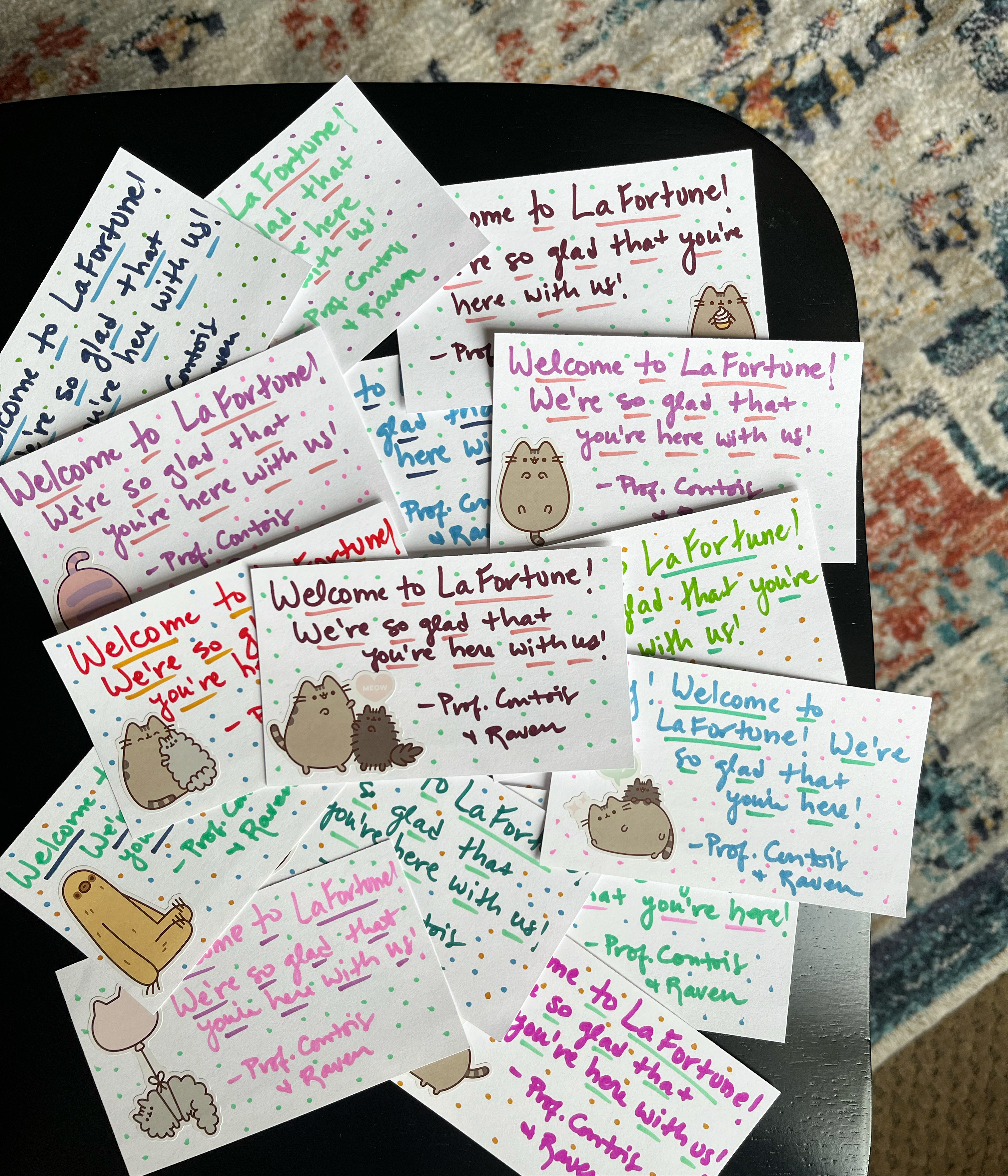 - Hand-wrote welcome notes for every LaFortune suite door, as well as encouragement notes for fall 2024 finals