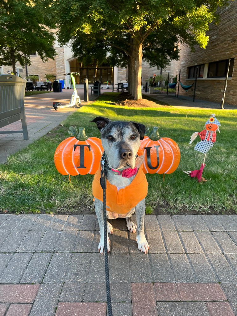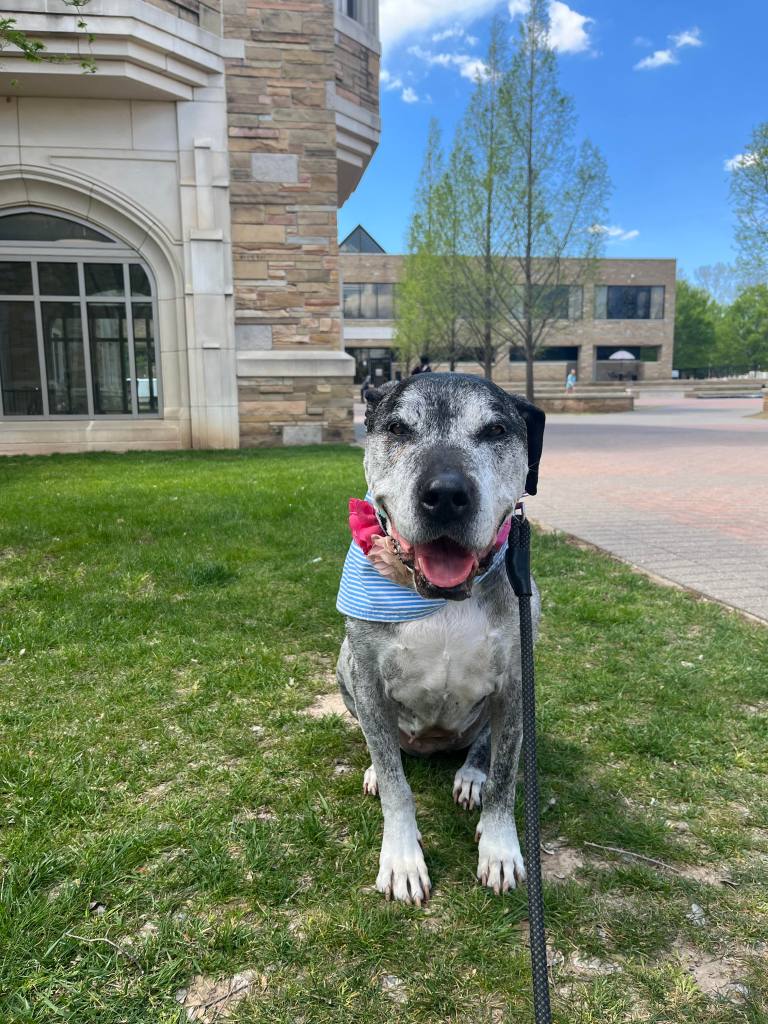 Daily Walks. Ruby and I are a constant presence on campus, walking our miles every morning and running errands in the afternoon. We’re always delighted to stop, say hello, and catch up with students—except for when Ruby is hard at work chasing squirrels, that is.