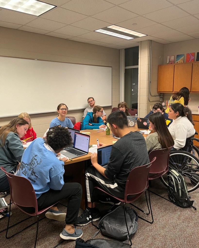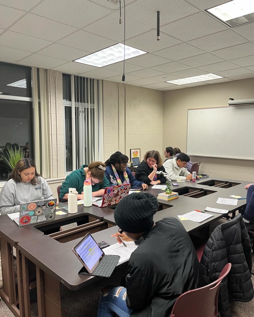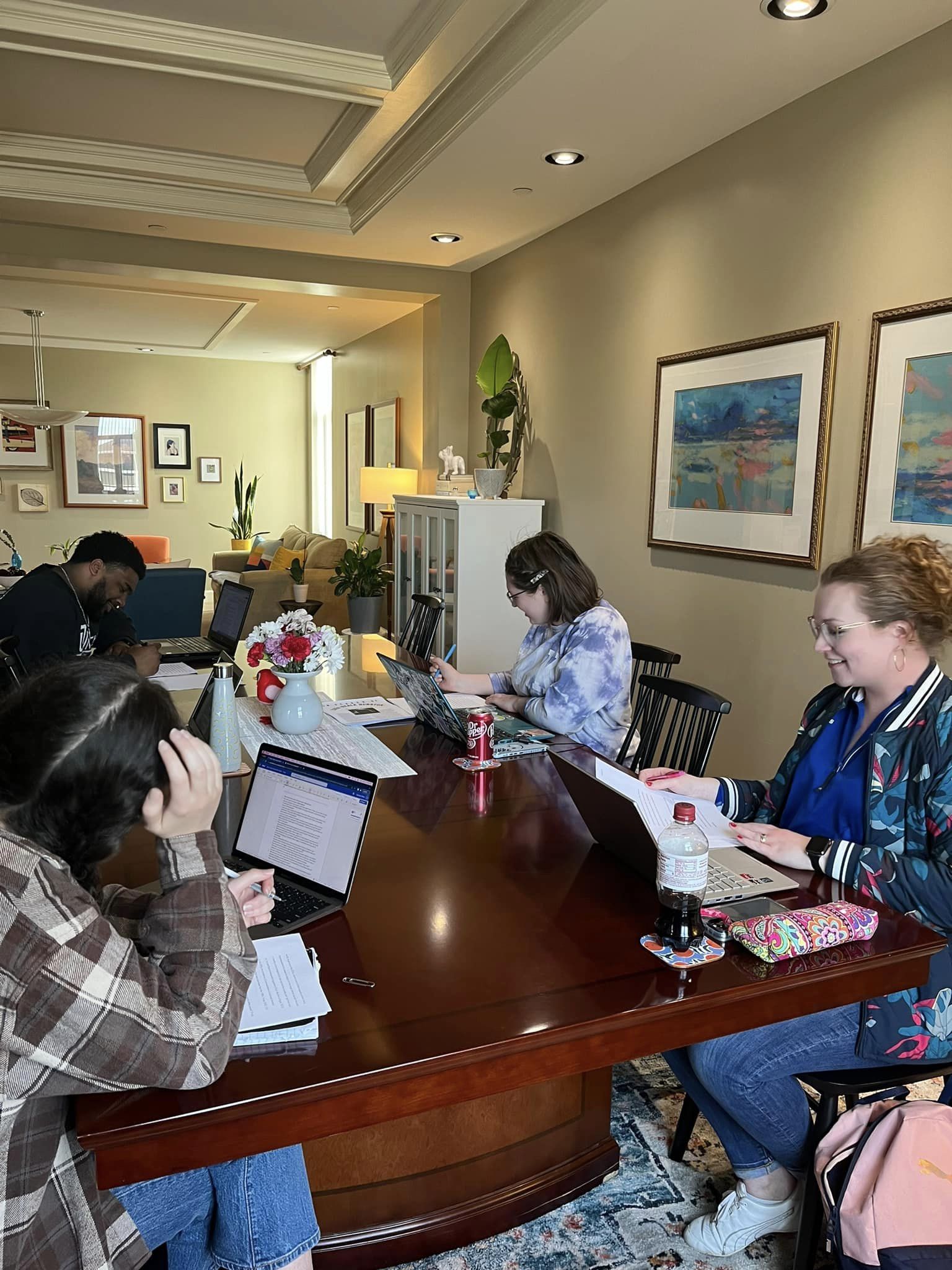 Cookie Study Hour in spring 2025 supported student study habits for midterms alongside mental and social health needs. It provided space, time, and supplies to study in community and with chocolate-chip cookies fresh from the oven!