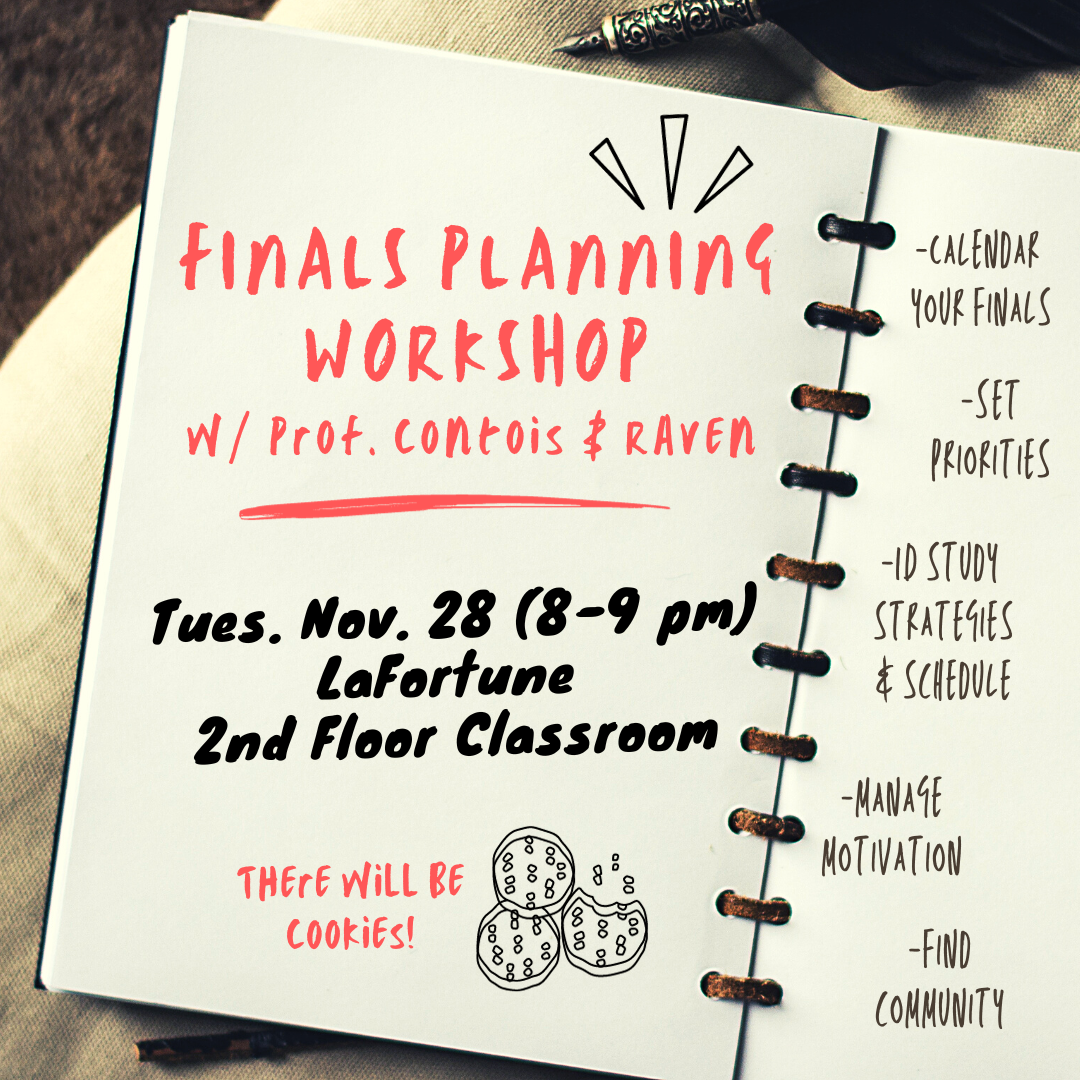 Finals Planning Support took place as a formal workshop in fall 2024 and an informal resource pick-up event in spring 2025. These sessions helped students to identify study and time management techniques that promote success on their exams and assignments, while managing motivation alongside mental, emotional, and social health needs.